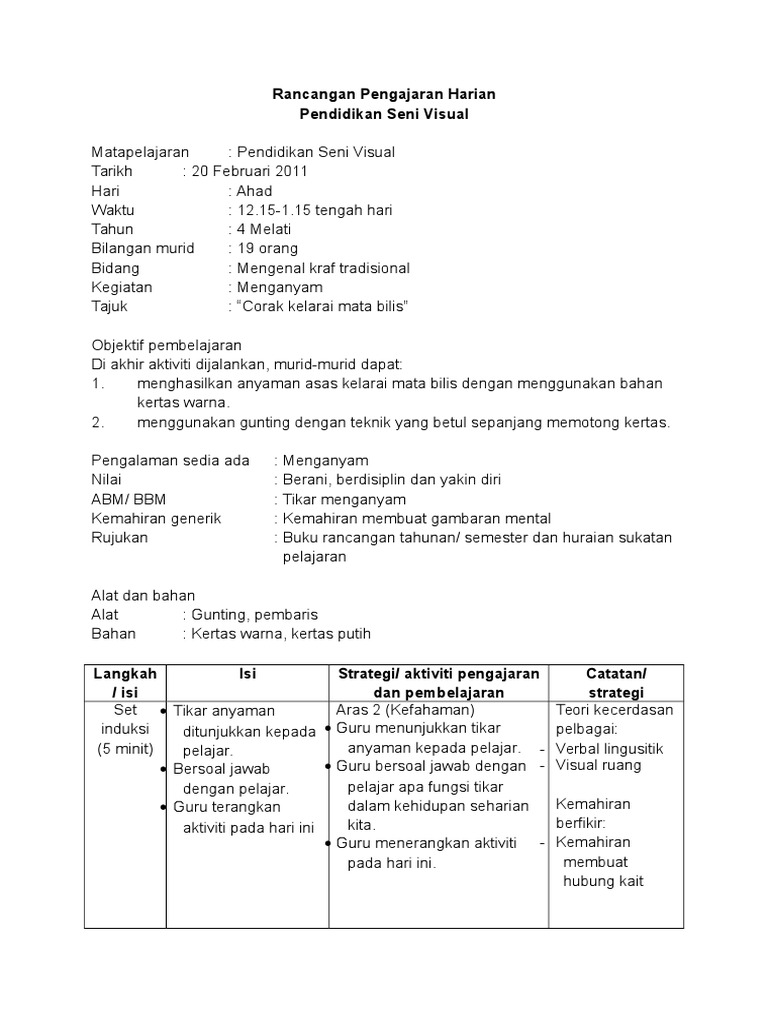 Rancangan Pengajaran Harian Pendidikan Seni Visual Tahun 6 Pdf