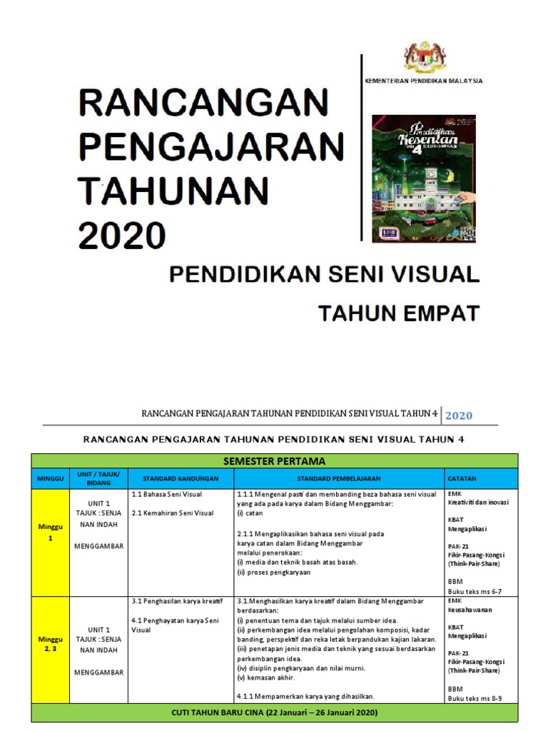 Jom Dapatkan Rpt Pendidikan Seni Visual Tahun 1 Yang Bermanfaat Khas Untuk Murid Download Pendidikan Abad Ke 21