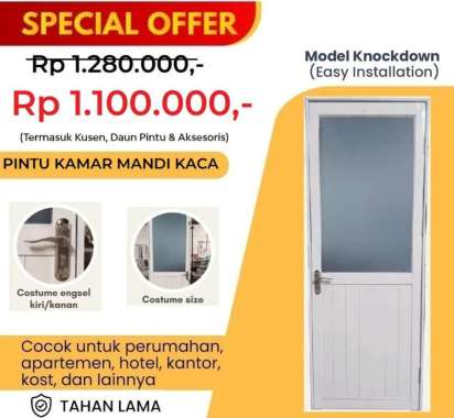 Jual Pintu Kamar Mandi Aluminium. Jakarta Pusat kreasi megah konstruksi. Ini adalah list harga pintu kamar mandi aluminium.